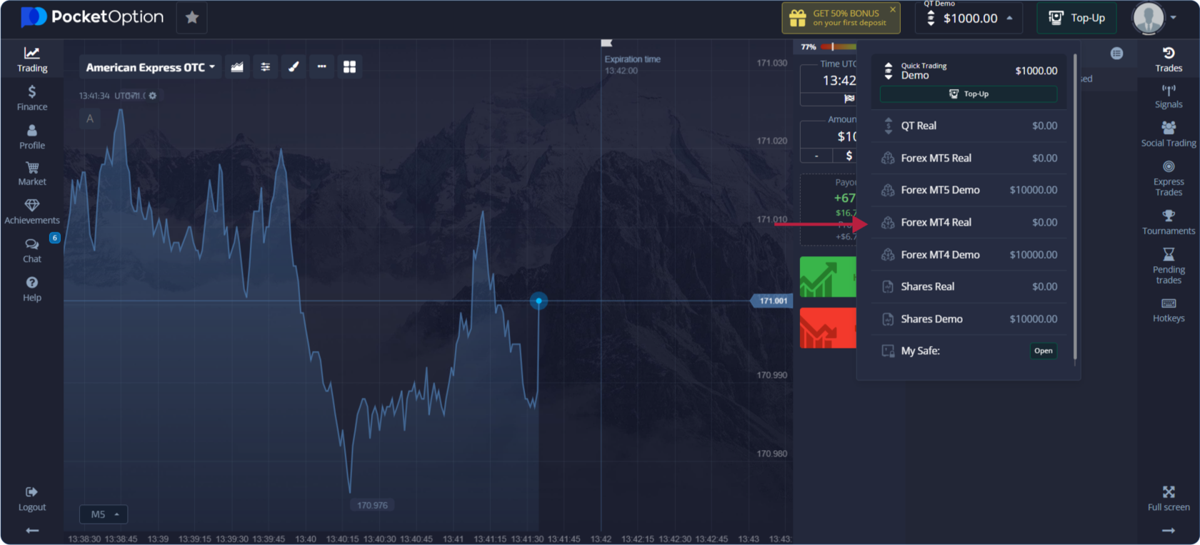 O MT4 facilita a negociação de forex, ações e criptomoedas, oferecendo acesso a uma ampla gama de índices e commodities. Além disso, há um portal de chat ao vivo no painel principal para os usuários entrarem em contato com a equipe de suporte em caso de dúvidas ou problemas.