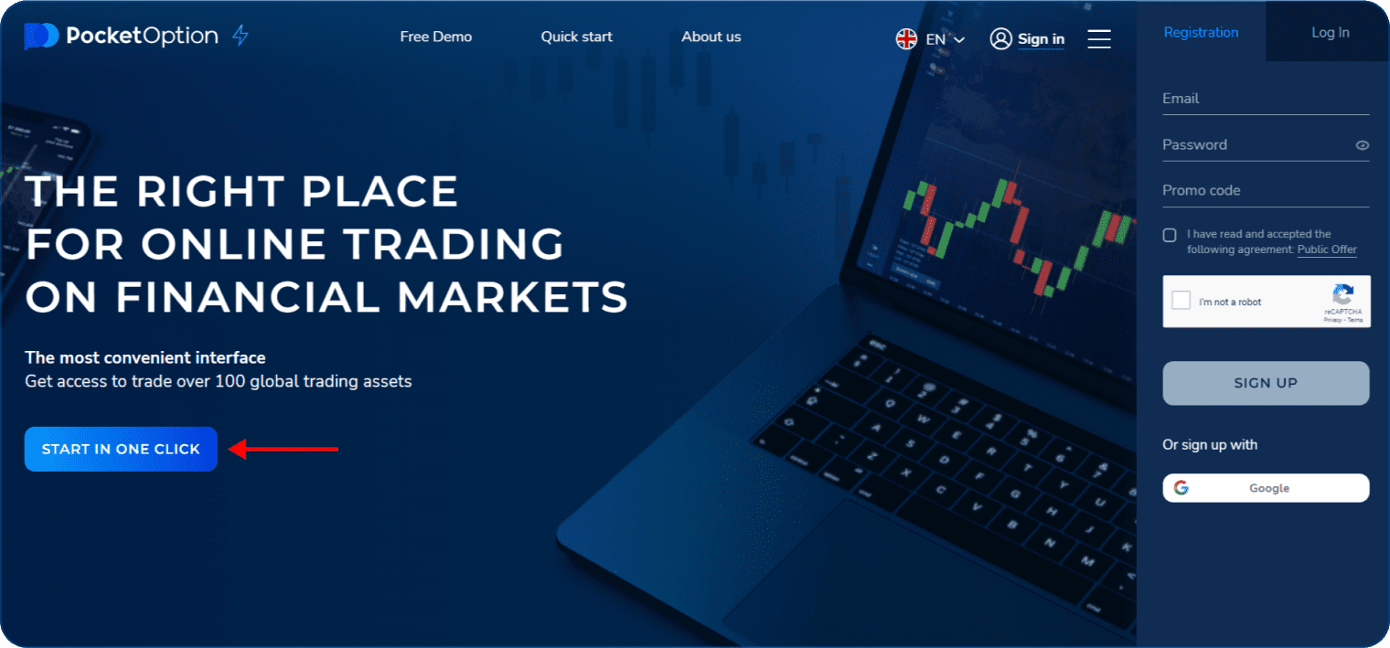 Você precisa instalar o aplicativo PocketOption Broker na App Store ou no Google Play para criar uma conta de negociação.