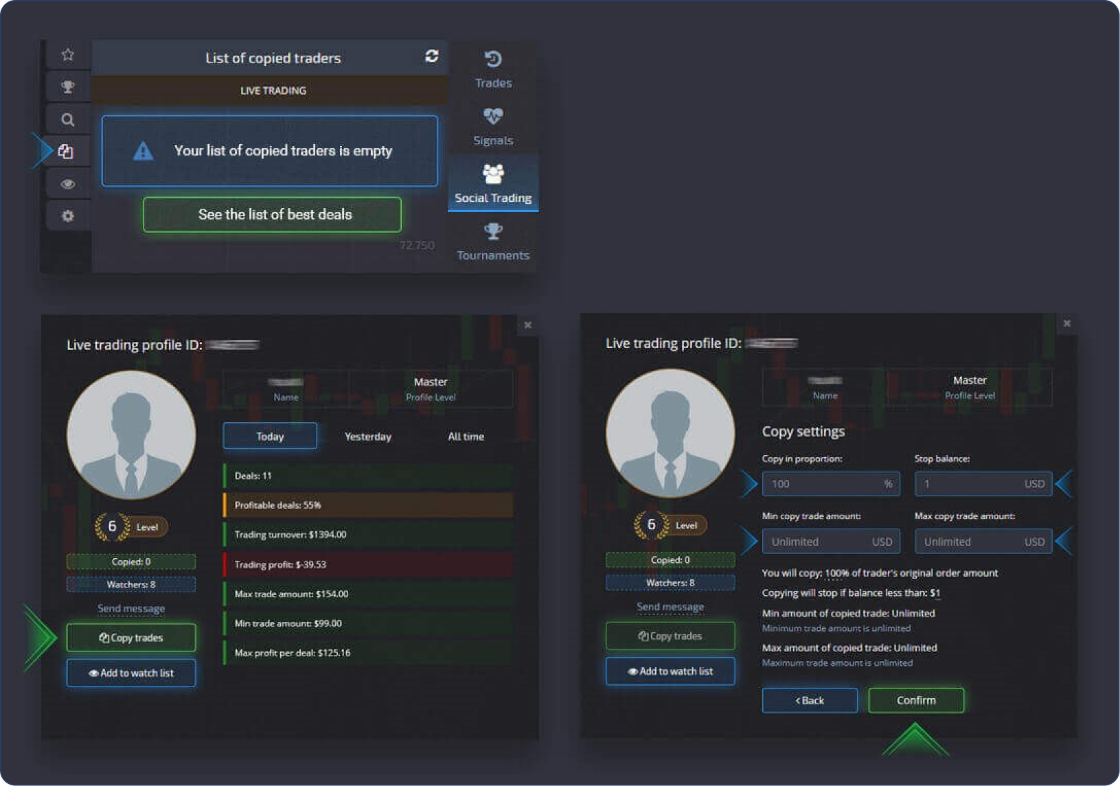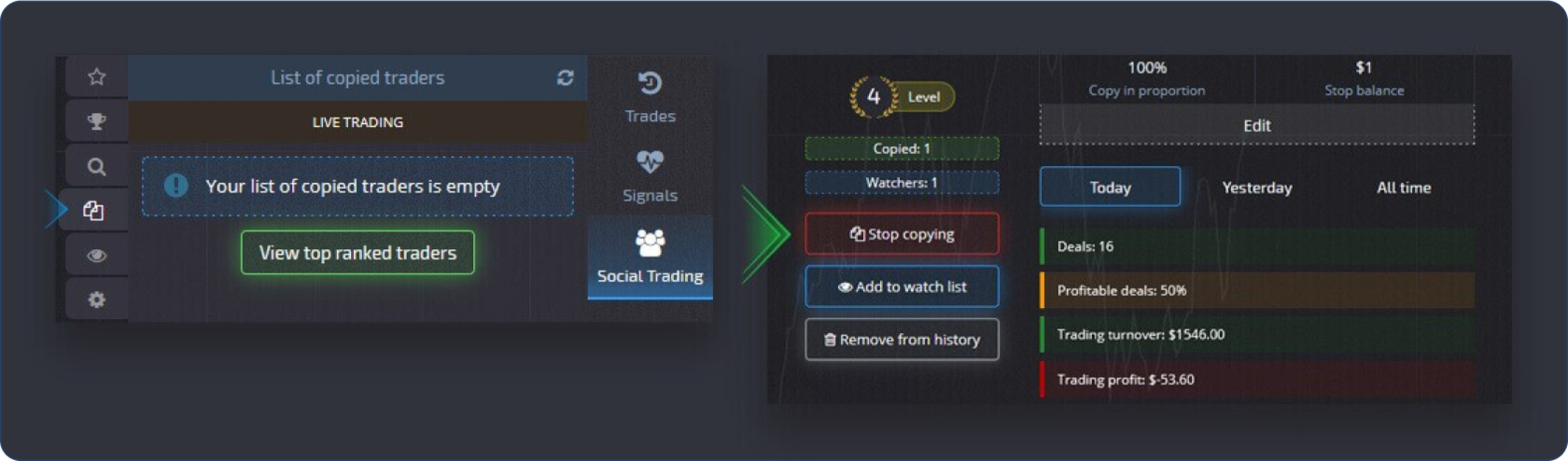 Isso ajudará a determinar se a negociação será copiada. No entanto, a razão exata pela qual a negociação não foi copiada pode ser encontrada no histórico do perfil de social trading.